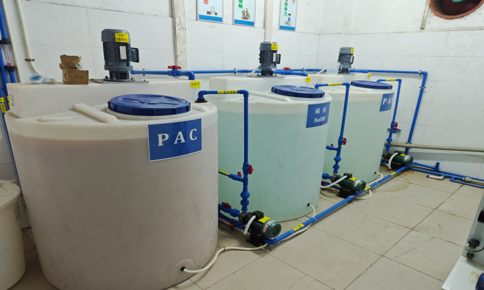 3、增加3套加药装置(烧碱、絮凝剂、混凝剂),包含储药桶,搅拌机,加药泵等;